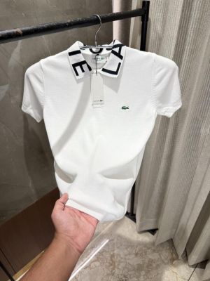 Lacost_e White Knitted polo Brand Collars