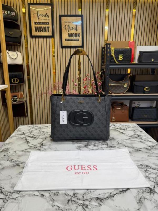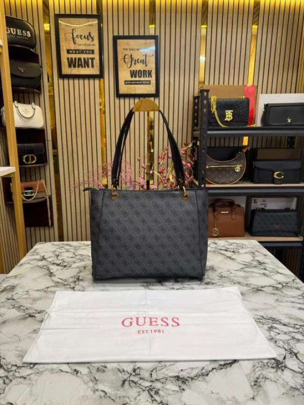 Guess Stone Eco Mietta Tote With Dust Bag (Black)