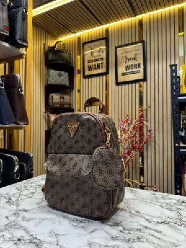 GUESS WOMENS BRAND LOGO BAGPACK WITH DUST BAG AND POUCH (DARK BROWN)