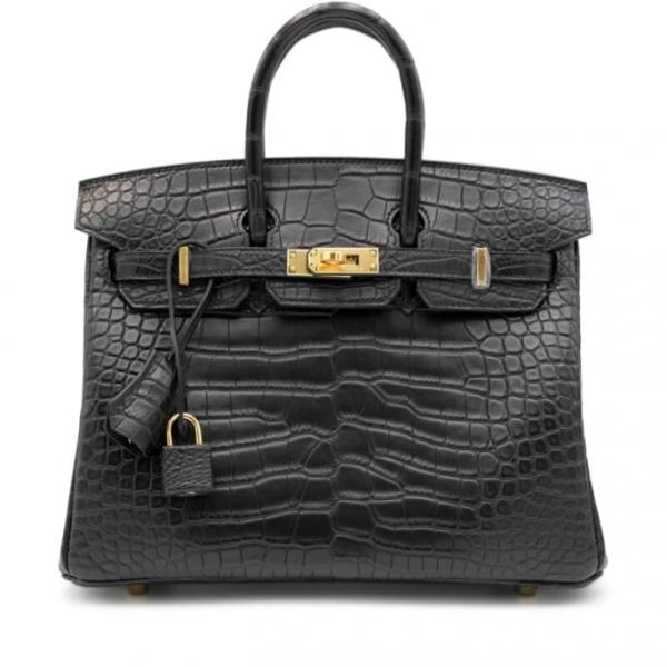 Hermes Birkin Croco Embossed Craie Togo Handbag (Black)