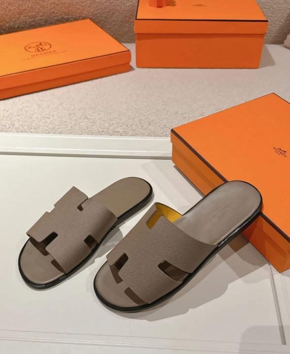 HERMES INFRA BLACK PREMIUM LEATHER SLIDE