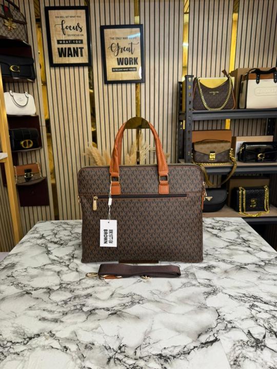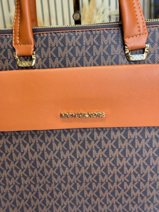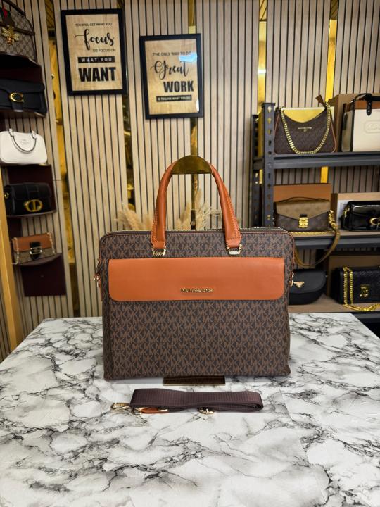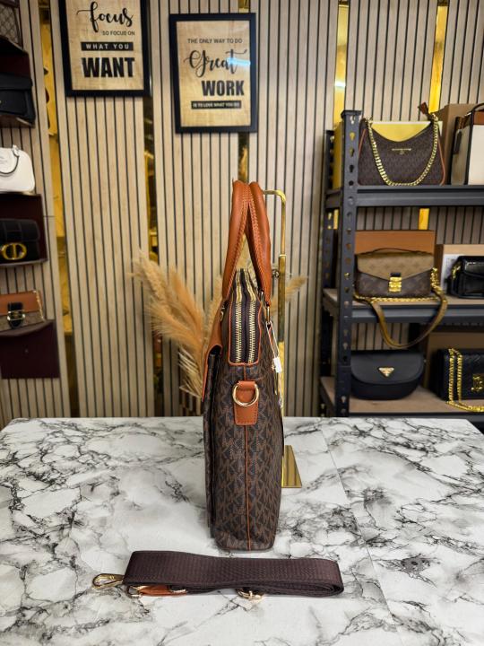 Michael_Kors Flap Mk Print Laptop Bag Premium Quality With Strap (Brown 1977-5)
