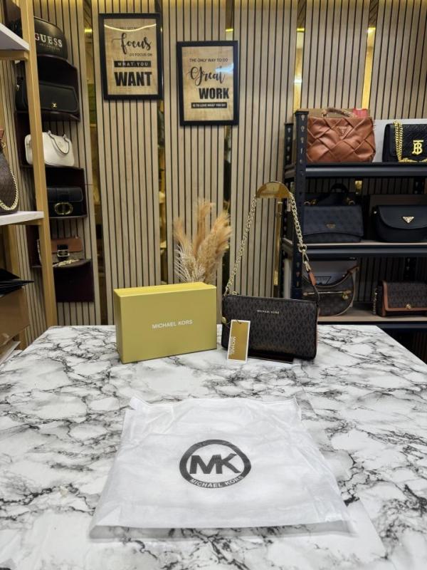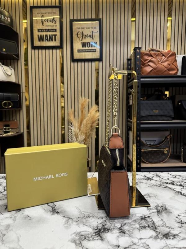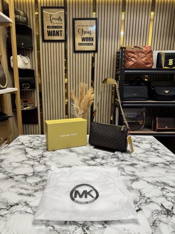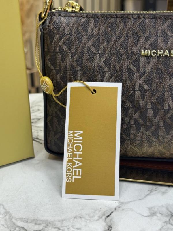 MICHAEL_KORS JET SET LEATHER POUCHETTE WITH OG BOX AND DUST BAG (BROWN)