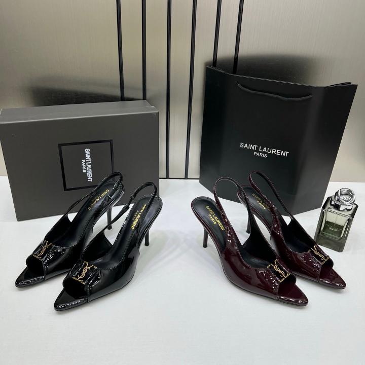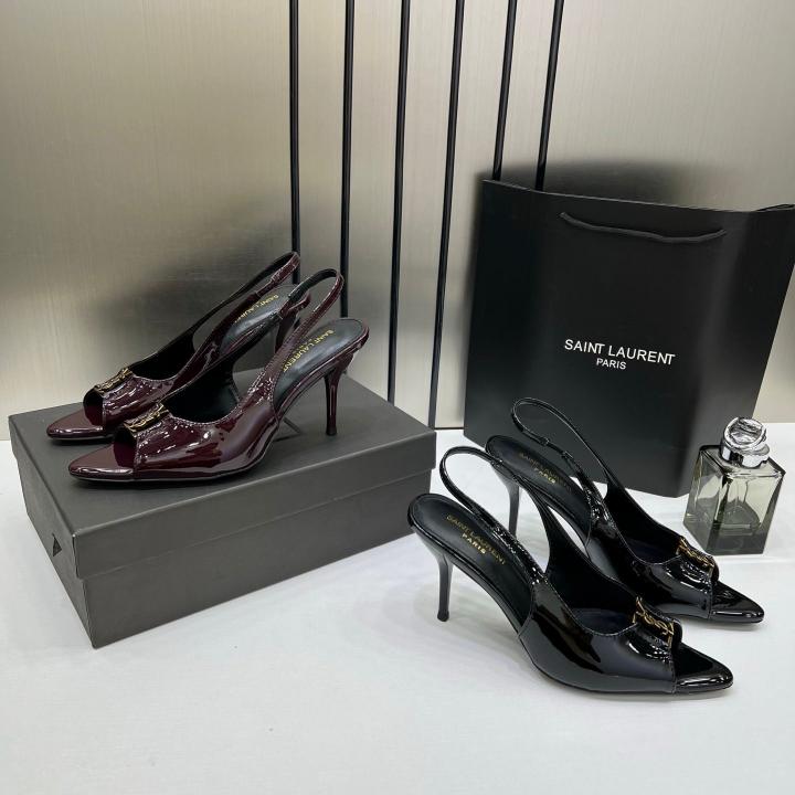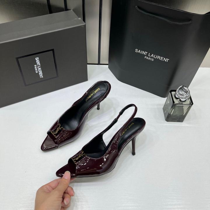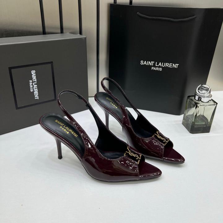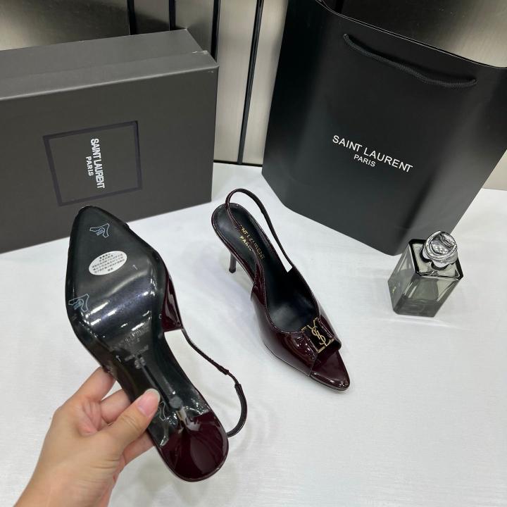 Ysl Saint Laurent Wine Patent Leather Slingback Heels With OG Box & Carry Bag Wine Patent A19