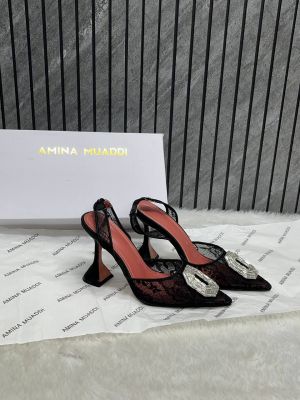 Amina Muaddi Camellia Crystal Embellished Lace SlingBack Heels For Women With Original Box